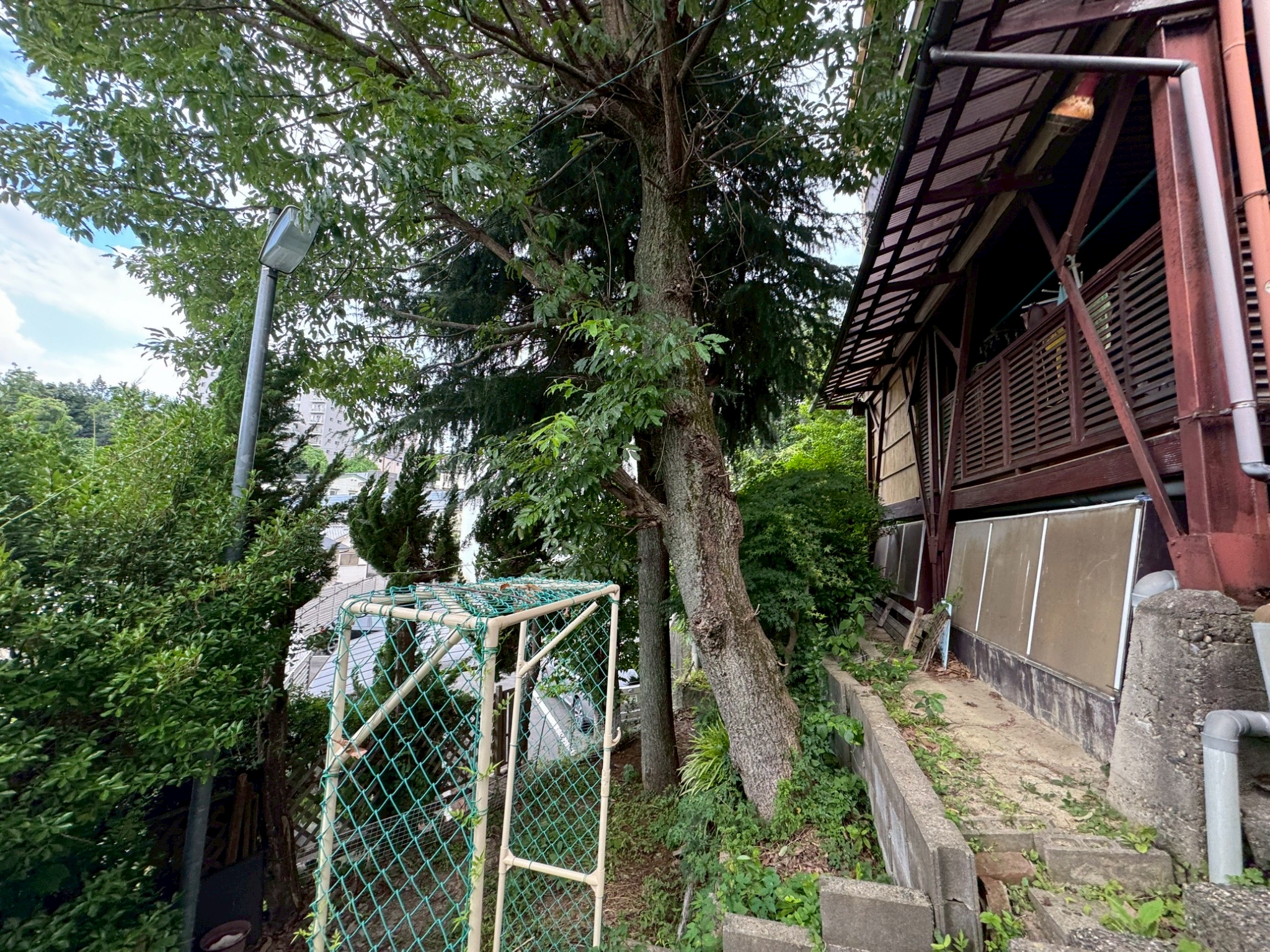 市川市のお客様から「裏庭の木がどんどん大きくなって、台風の時に倒れてこないか心配で見にきてほしい」とご相談をいただきました。